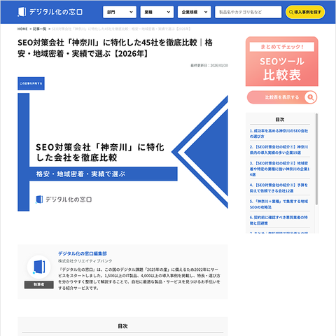 デジタル化の窓口の『おすすめのSEO会社』に弊社が掲載されました。